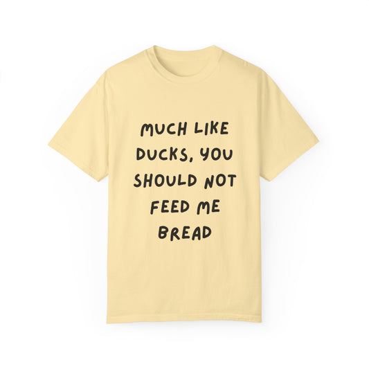 Humorous Unisex T-Shirt - "Much Like Ducks, You Should Not Feed Me Bread"