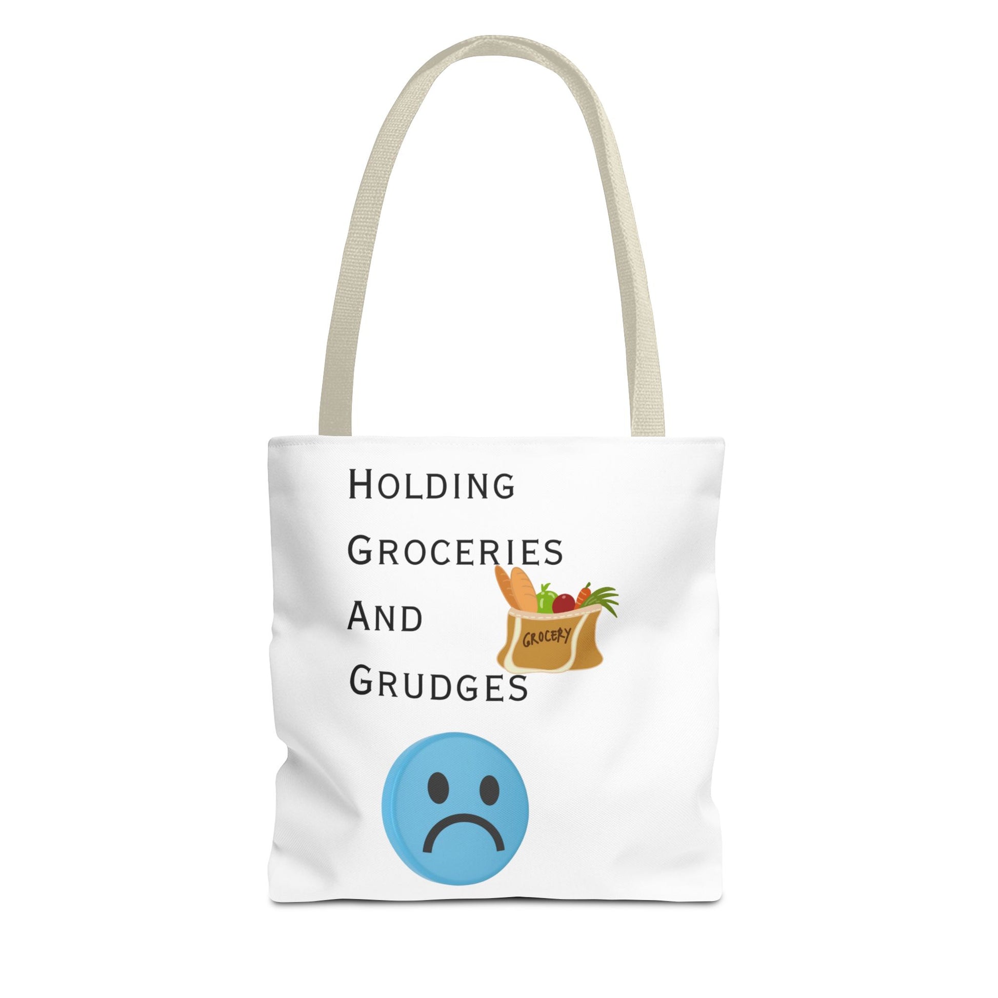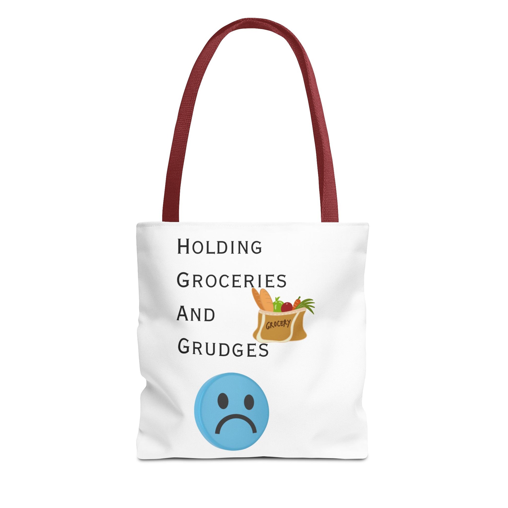 Funny Grocery Tote Bag - 'Holding Groceries and Grudges'